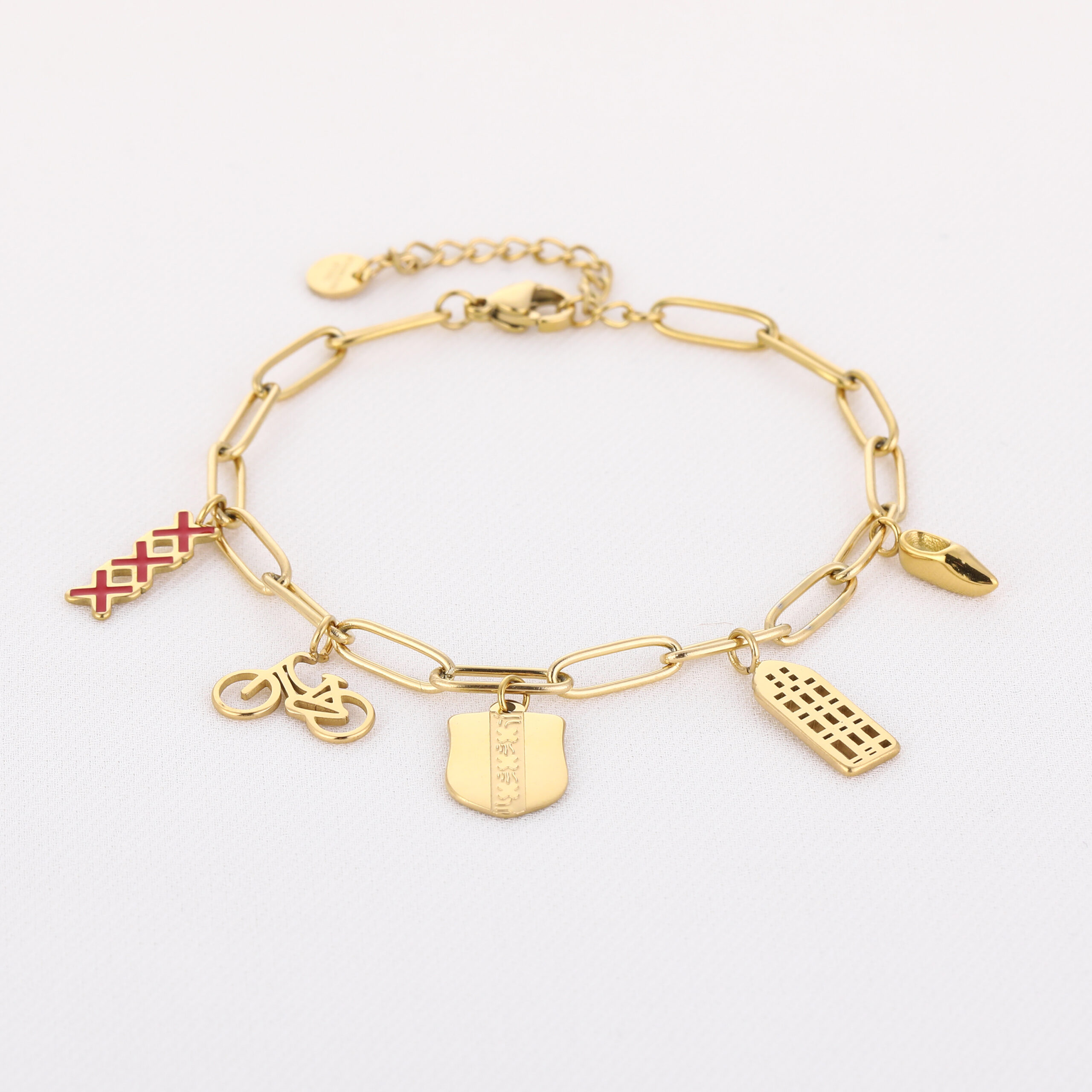 Deze stijlvolle Amsterdamse bedels armband met bedels combineert moderne eenvoud met persoonlijke flair. Gemaakt van duurzaam stainless steel is hij bestand tegen dagelijks dragen — hij verkleurt niet, blijft glanzen en is ideaal voor wie op zoek is naar een onderhoudsvrije, tijdloze armband. De bedels (bijv. hartjes, balletjes of andere vormen) geven de armband karakter en maken hem veelzijdig: draag hem alleen als subtiel statement of combineer met andere armbanden voor een gelaagde look. Een perfect sieraad voor wie elegantie wil zonder concessies aan kwaliteit.Materiaal: hoogwaardig stainless steel — kleurvast, krasbestendig en onderhoudsarm.