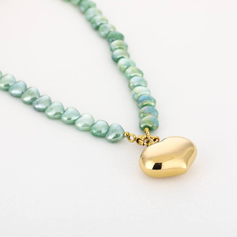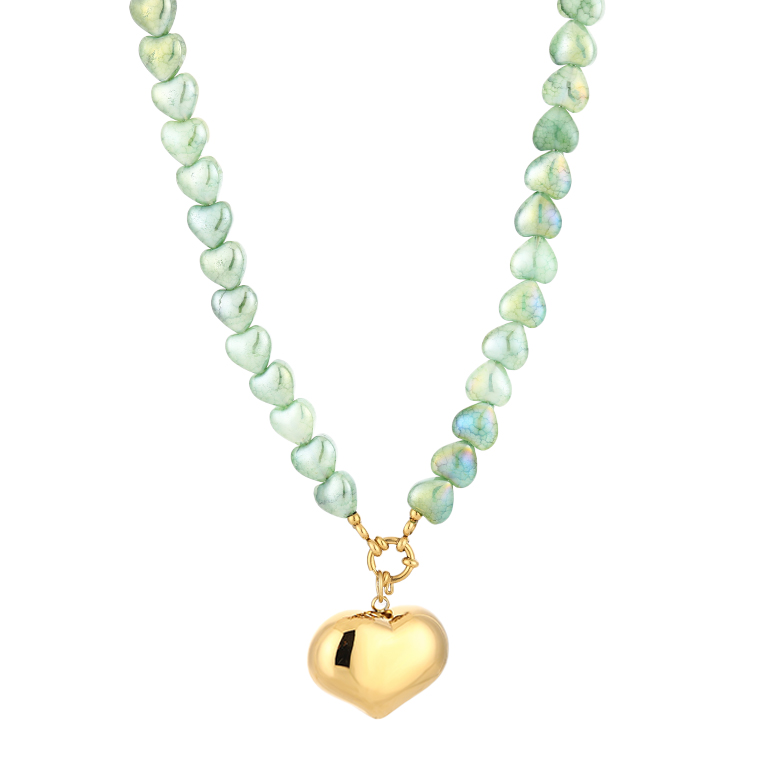 Groene kralenketting met Gouden hartje