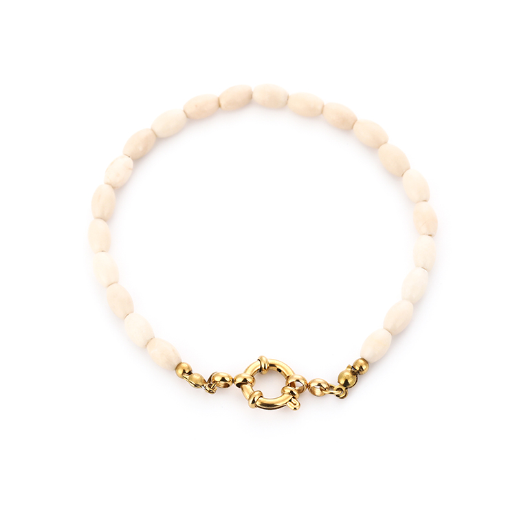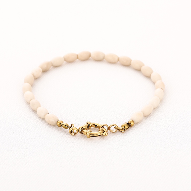 Kralen Armband – Beige met Stainless Steel Sluiting