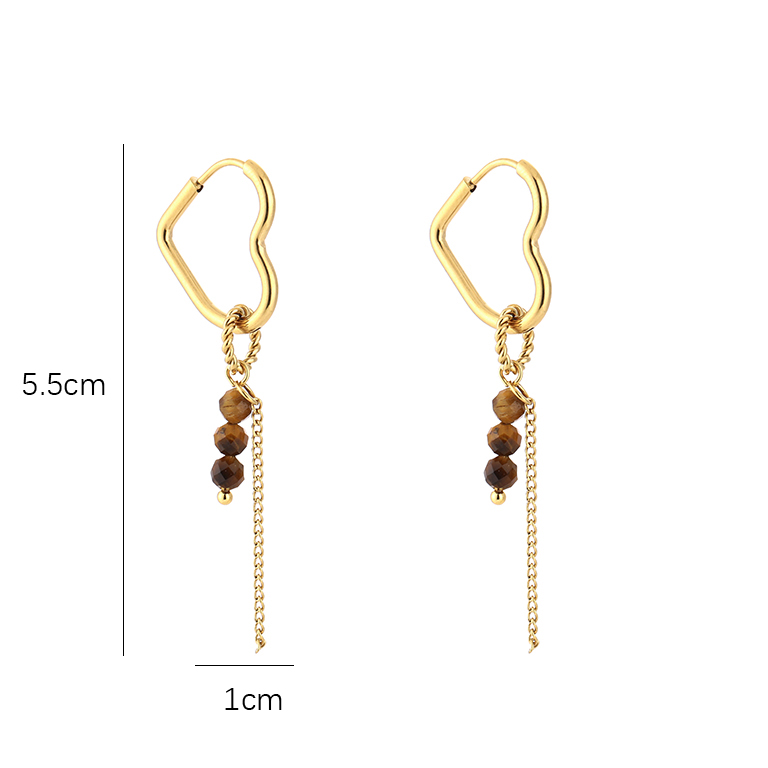 Deze tijgeroog hart oorbellen met kralen in goud kleur zijn een stijlvolle combinatie van natuurlijke schoonheid en modern design. De warme bruin-gouden tinten van de tijgeroog steen geven de oorbellen een unieke en luxe uitstraling.